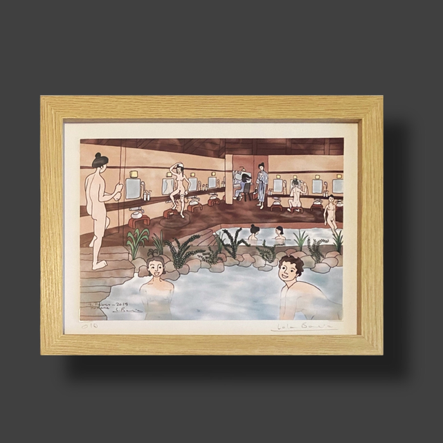 Ilustración digital original por Lola Barcia Albacar. De la serie “Fotolateras en Japón” su tamaño es de 20x14cm, enmarcada con esquineras sobre pass-par-tout, ejemplares numerados y firmados por la autora . El marco es de madera y su medida total es de 26,50x 20,5cm .